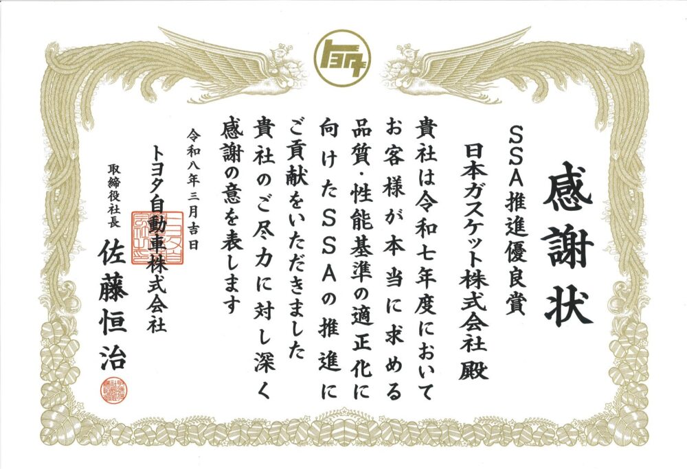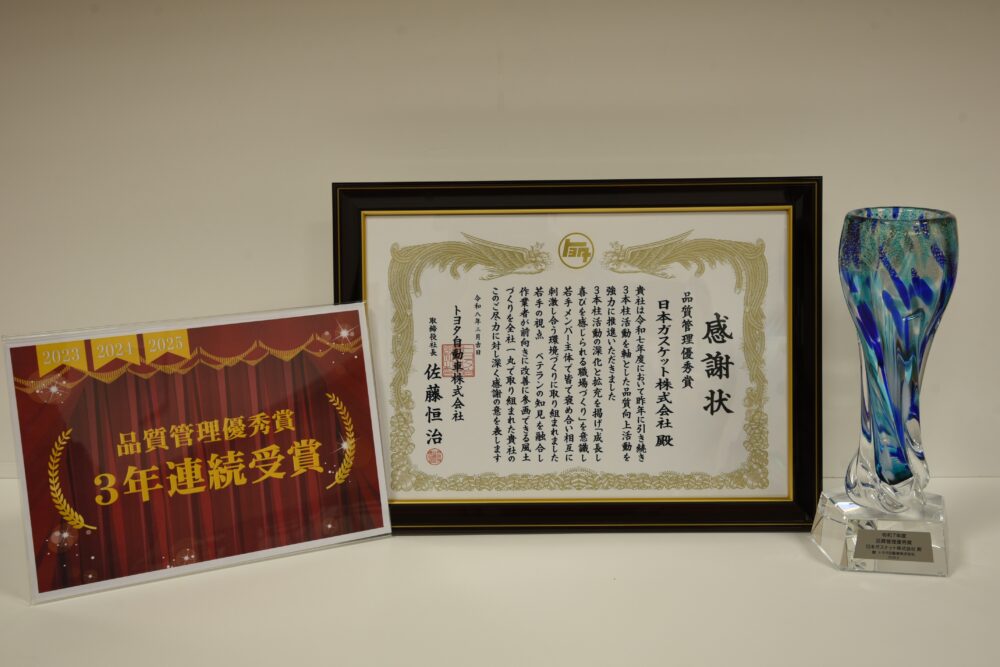 トヨタ自動車株式会社より『品質管理優秀賞』(3年連続)、『SSA推進優良賞』(2年連続)を受賞しました。